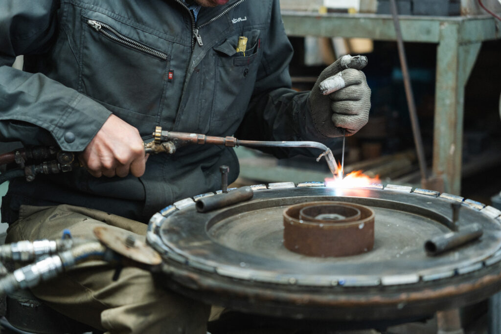 各種粉末金属と人工ダイヤモンド砥粒を混合して焼結体を作り、タイル・コンクリート・石材・セラミック類など硬脆材料を加工、切断、研磨するための工具を作成しています。